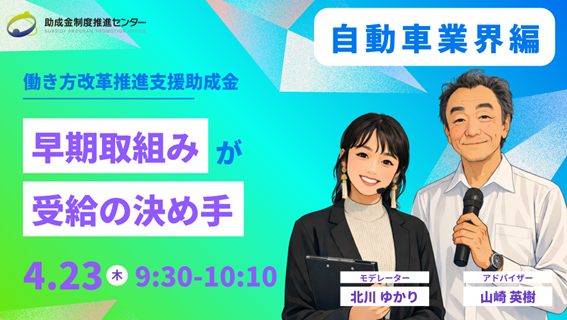 2026年4月23日、Zoomオンラインにて会員様向けに「【業種別に解説!】働き方改革推進支援助成金(自動車業界編)」を開催いたしました。